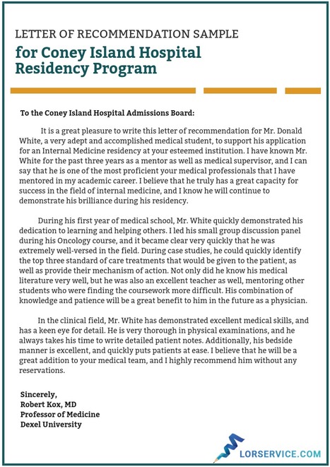 Letter Of Recommendation For Medical Residency Easy Writting