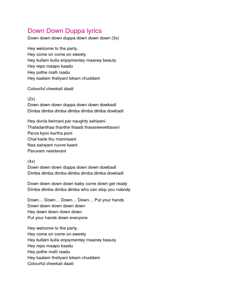 Down Down Duppa Song Lyrics Howlyrics