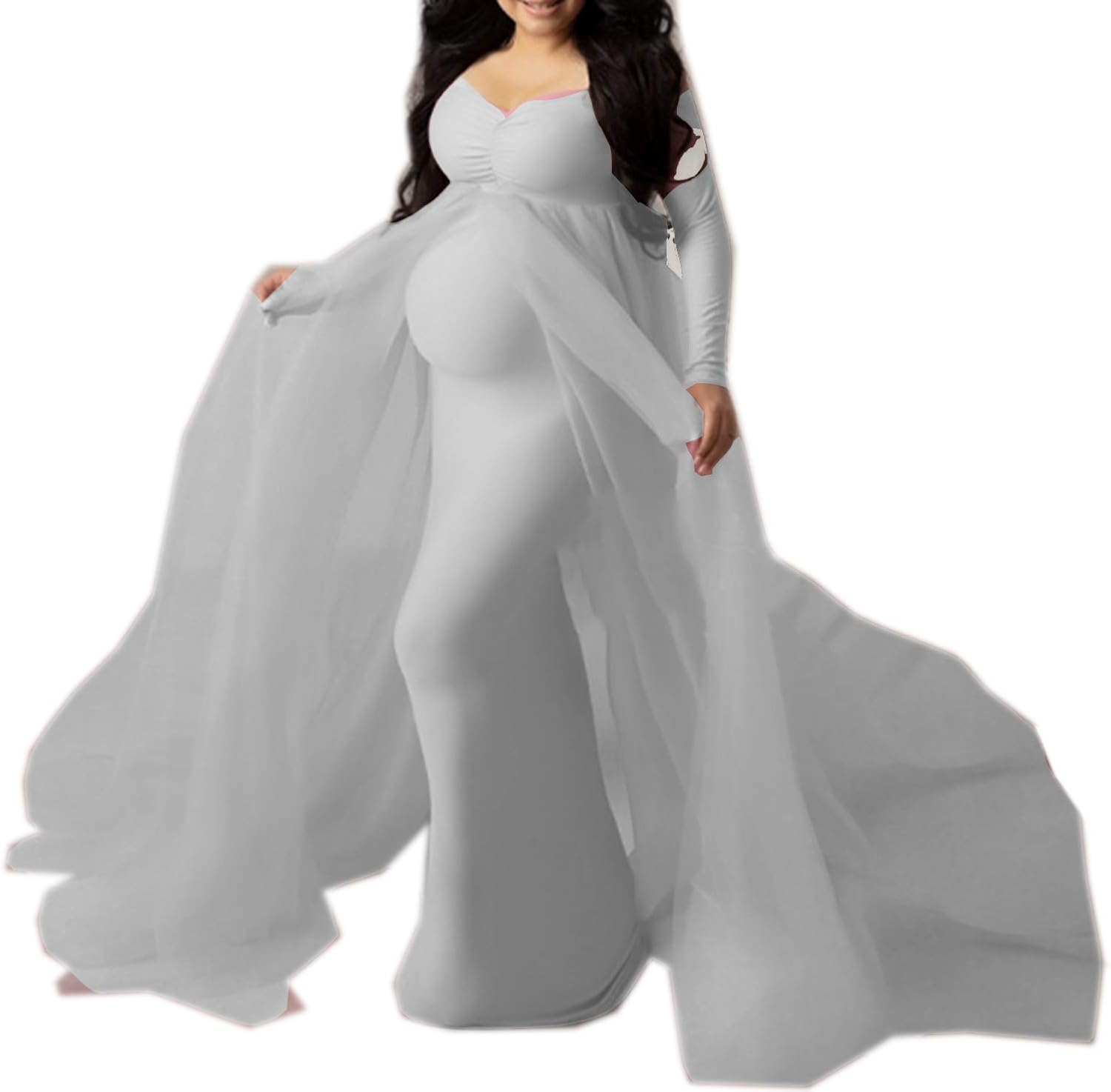 Arbres White Maternity Dress For Baby Shower Fitted Slim With Chiffon Train Maternity Gowns For Photo Shoot Or Wedding Pregnancy Dress Maternity Dresses